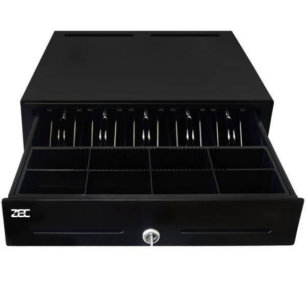 کشوی پول ZEC مدل ZE40 دستگاهی است که از آن برای نگهداری و دسته بندی پول نقد دریافت شده از مشتری و معمولا در کنار صندوق فروشگاهی ، دستگاه پوز ، بارکد اسکنر و فیش پرینتر استفاده می شود. کشوی پول زد ای سی مدل ZE40 ،دارای بدنه تمام فلزی و مستحکم و سینی فلزی قابل استفاده در انواع فروشگاه های زنجیره ای ،داروخانه ها ،رستوران ها و…می باشد. کشوی پول زد ای سی (ZEC) مجهز به محفظه های جداگانه جهت نگهداری اسکناس و سکه و چک می باشد .گیره ها با نگه داشتن اسکناس ها در جای خود، از پخش شدن آن ها جلوگیری می کنند. از ویژگی های کشوی پول زد ای سی مدل ZE40 ،می توان به قفل امنیتی سه حالته (قفل/ دستی و الکترونیکی) اشاره کرد. در حالت تنظیم این قفل بر روی حالت الکترونیکی، می توان کشوی پول را به فیش پرینتر متصل کرد تا با صادر شدن فاکتور ،درب کشوی پول به صورت اتوماتیک باز شود. کشوی پول ZE40 ،به زنگ هشدار نیز مجهز است تا در صورت باز شدن درب کشو با صدای آن کاربر مطلع شود.